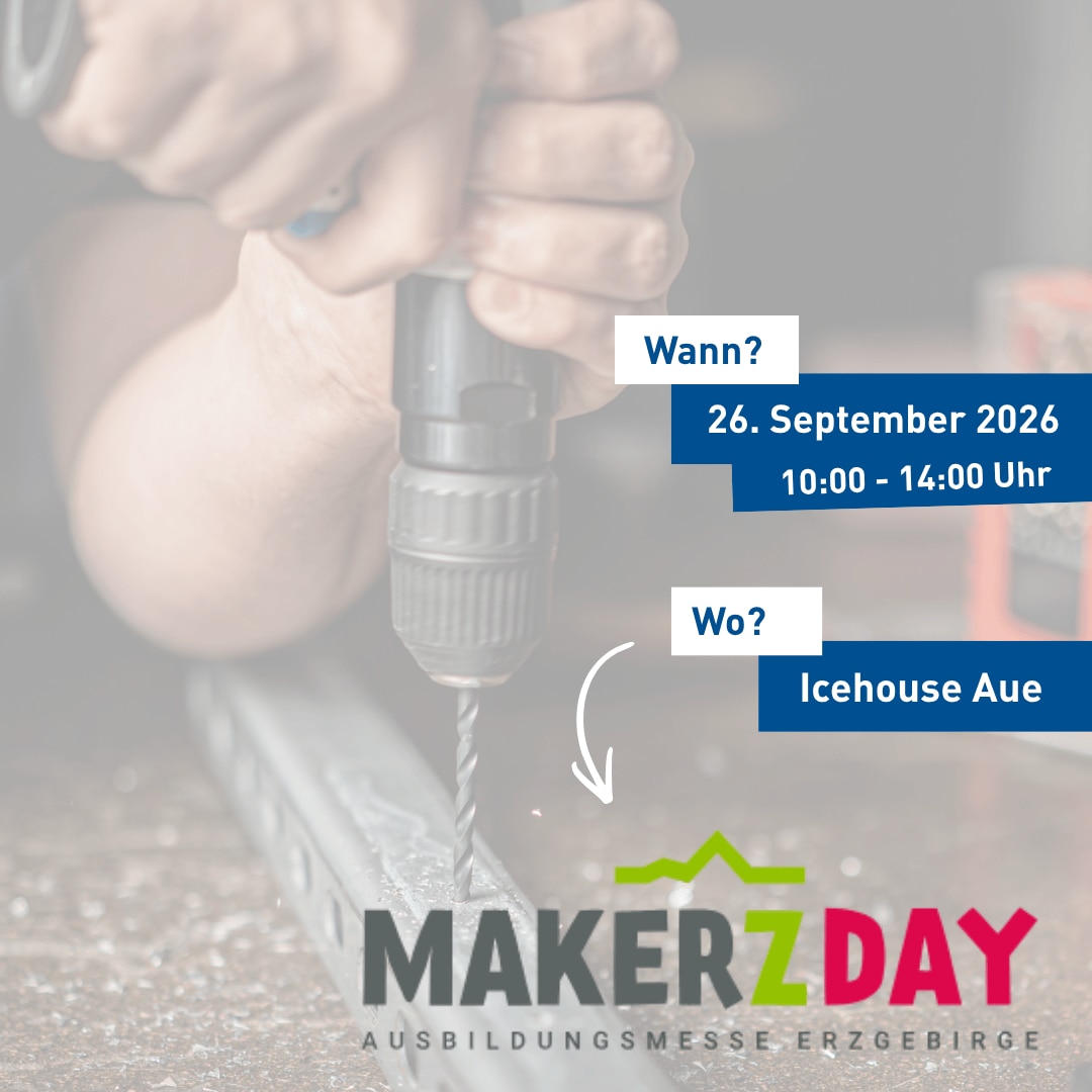 Wir nehmen an der Ausbildungsmesse Erzgebirge, am MAKERZDAY 2026, teil. Die Messe dient dazu, sich praxisnah über Ausbildungsberufe in der Region zu informieren.