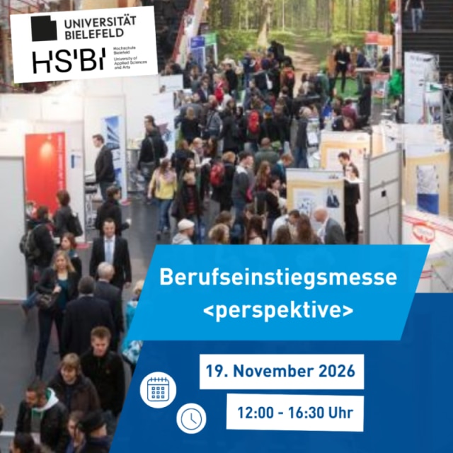 Auch in diesem Jahr findet wieder die Berufseinstiegsmesse <perspektive> in Zusammenarbeit der Hochschule Bielefeld und der Uni Bielefeld statt und wir sind dabei.