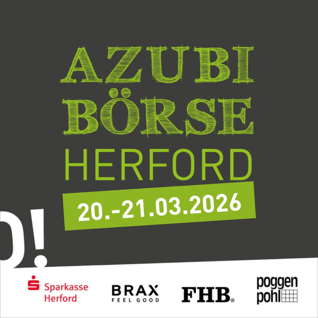 Aus diesem Grund sind wir auch in diesem Jahr ein Teil der Herforder Ausbildungsplatzbörse 2026 im Alten Güterbahnhof in Herford. Die Azubi-Messe findet vom 20.-21.03.2026 statt.
